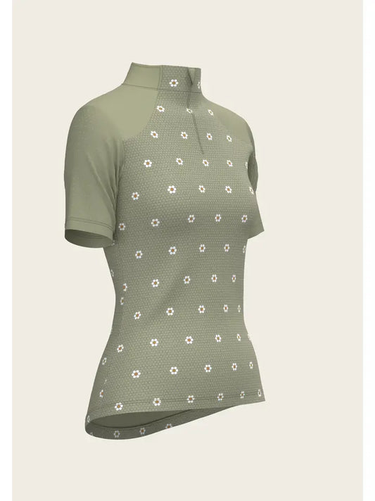 ESPOIR Mosaic Daises in Olive Short Sleeve Sport Sun Shirt