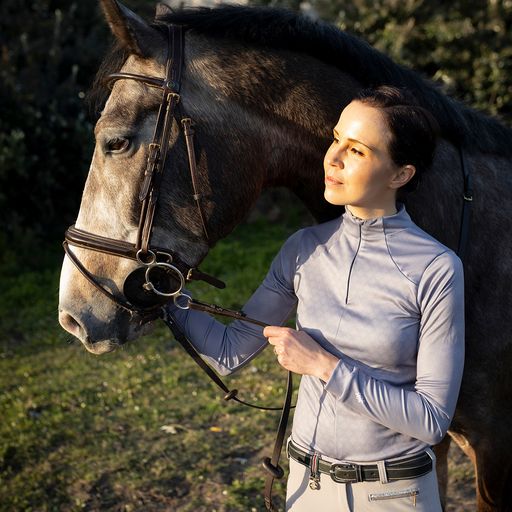 ESPOIR Roped Bridles On Black Quarter Zip Sun Shirt