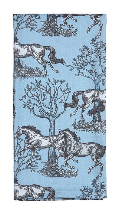 Horse Themed Kitchen Tea Towel - Blue