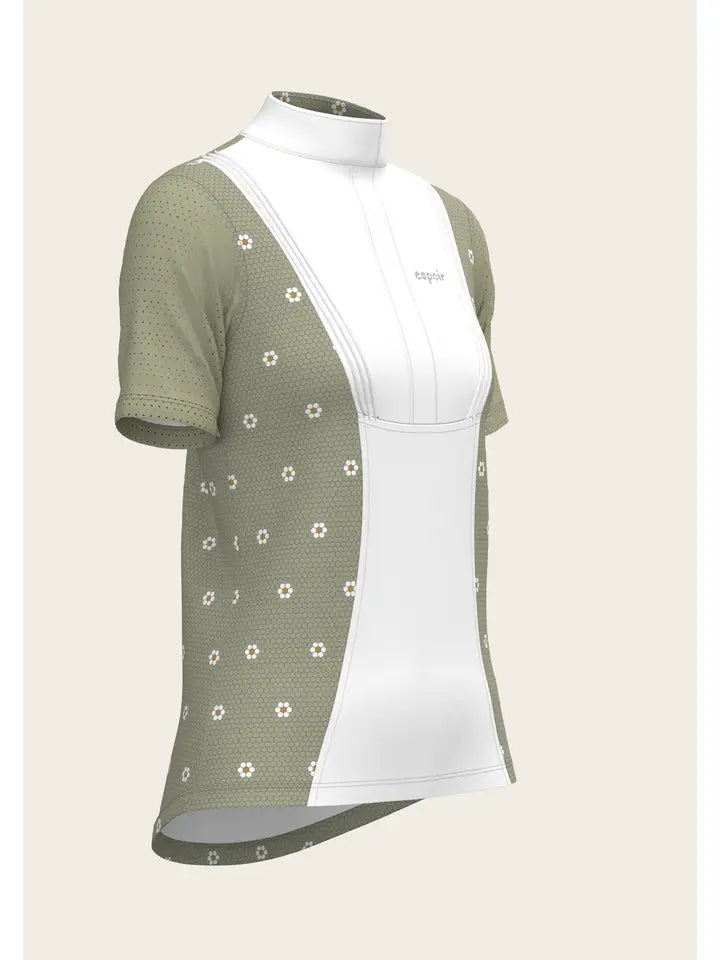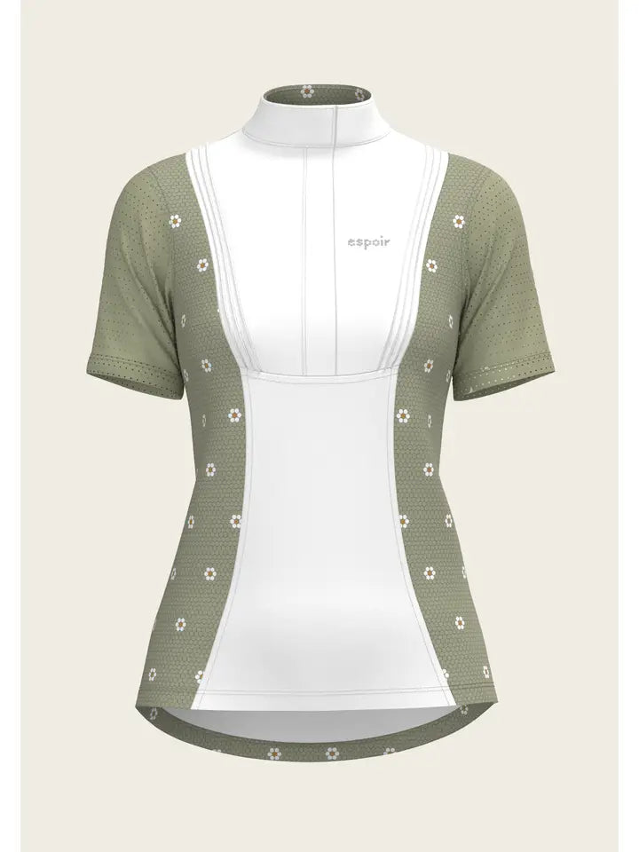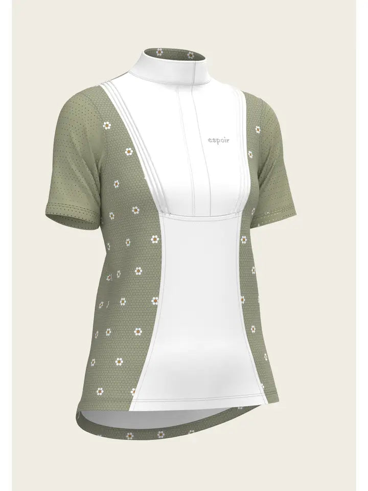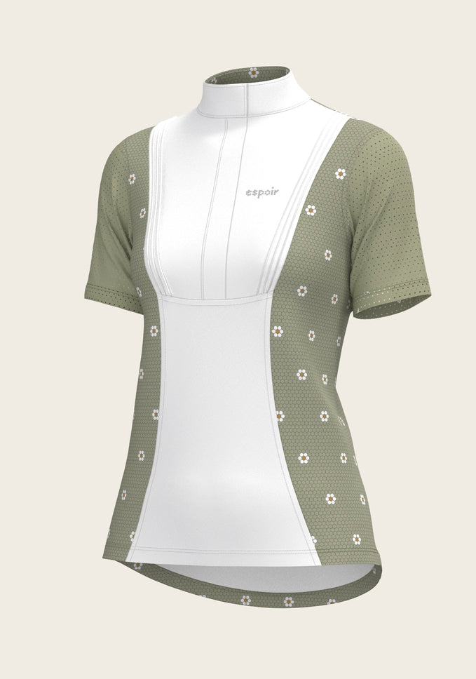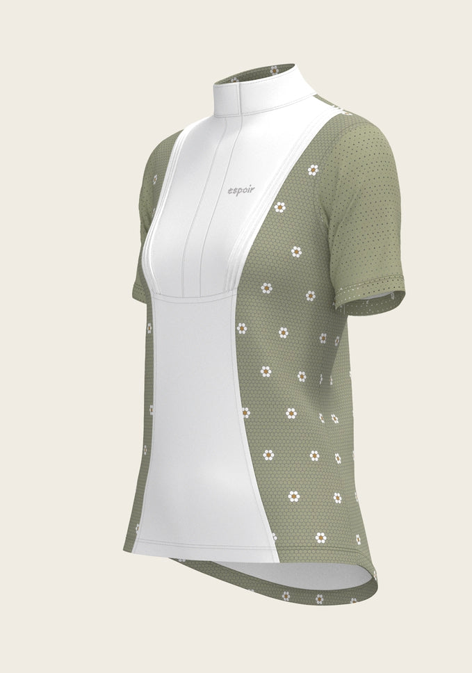 Whether you're in the show ring, training, or looking for a refined competition look, the Espoir Mosaic Daisies in Olive Short Pleated Short Sleeve Show Shirt is the ultimate blend of performance and elegance.