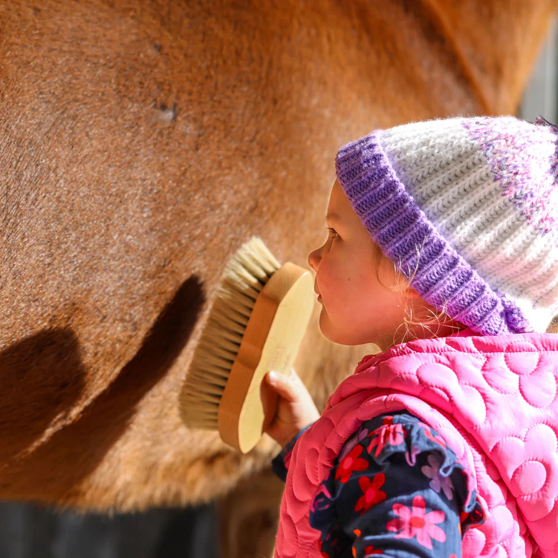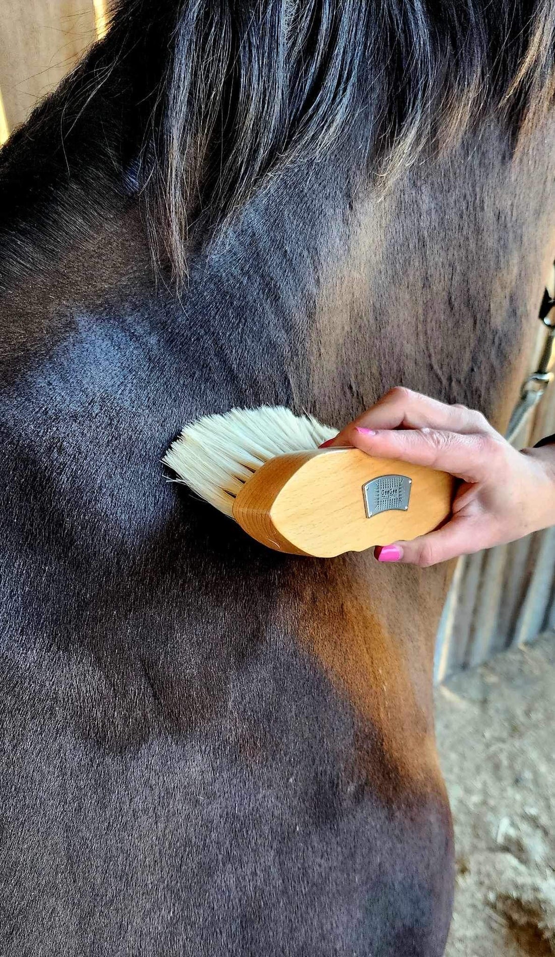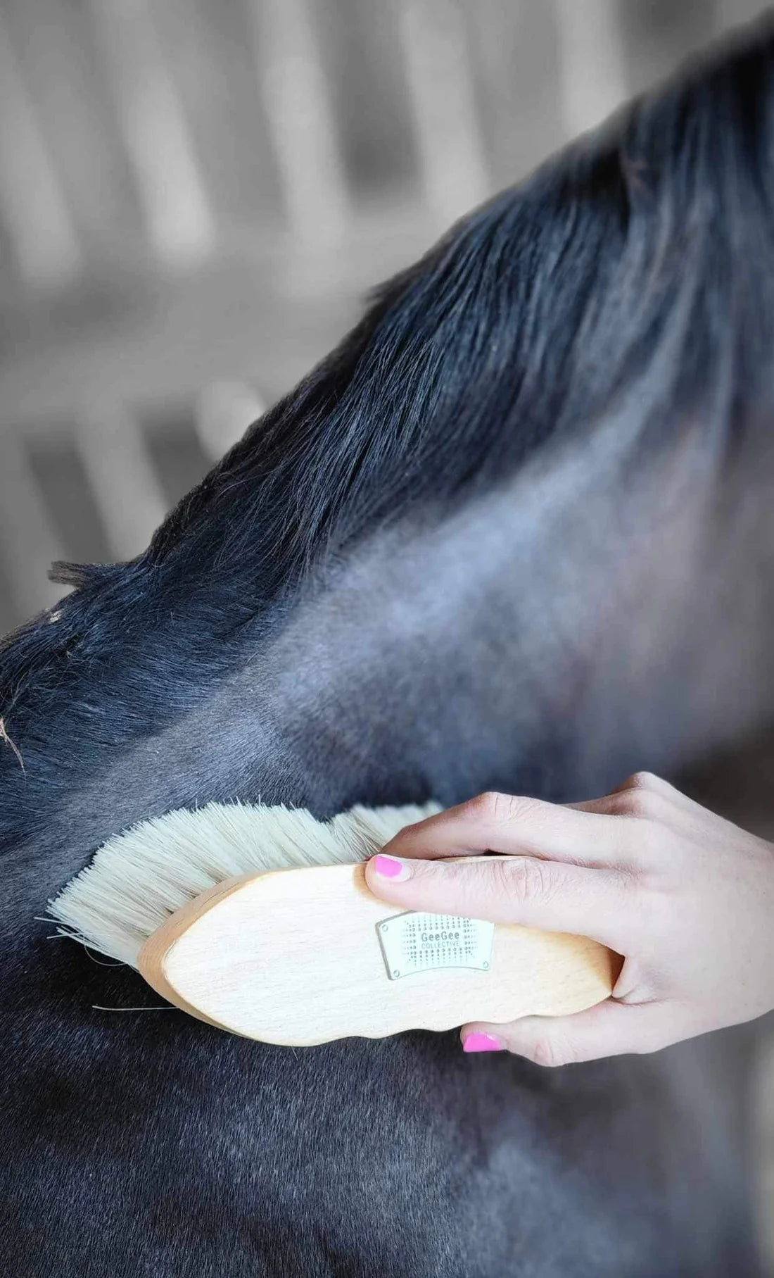 Meet the Gee Gee Collective 'Versitile' Body Brush - the ultimate all-rounder for your grooming needs. Designed with natural soft finishing bristles, this brush delivers a dust-free, shining coat with a slightly firmer touch compared to our 'Softie' brush.