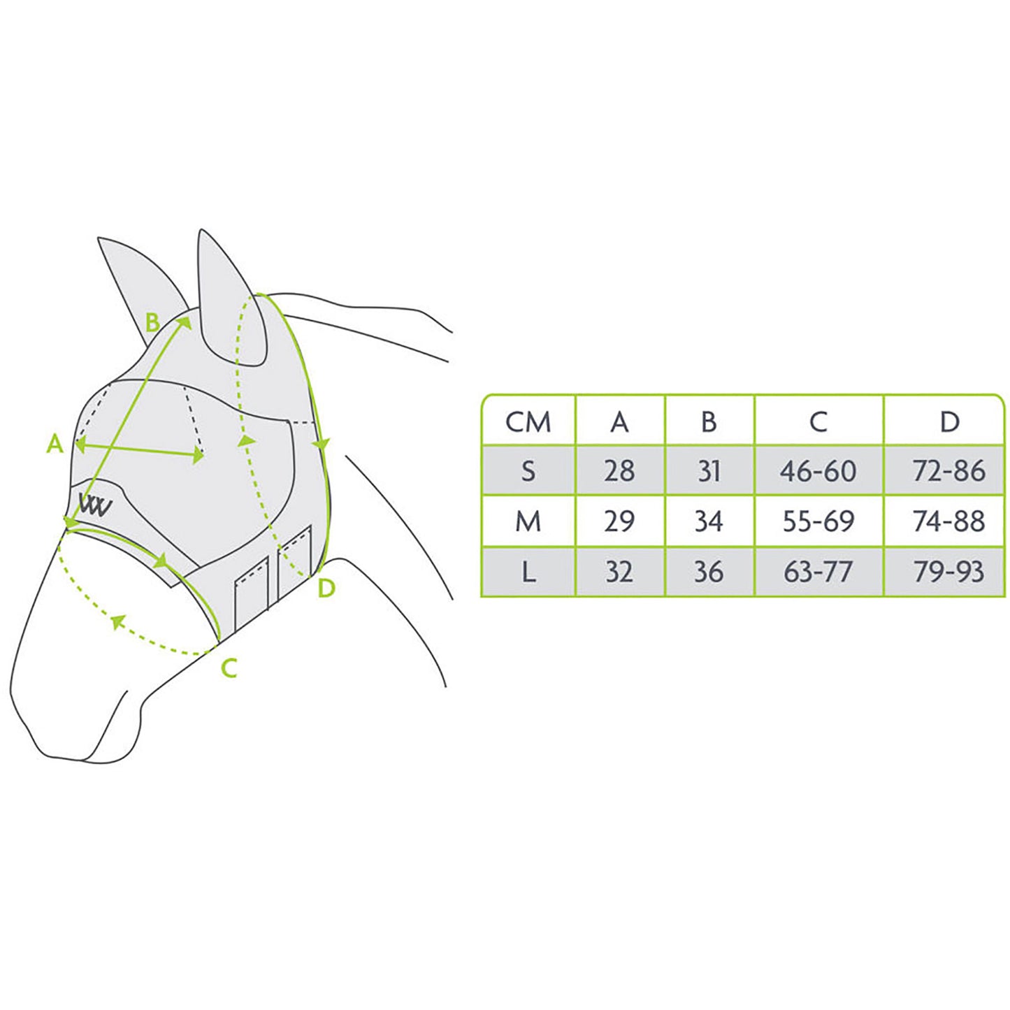 The mask is easy to fit and can sit over or under the bridle. The Woof Wear designers specified soft and stretchy 3D Spacer Fabric to eliminate rubbing, and fine UV mesh for crystal clear vision, to create one of the most comfortable and effective Fly Masks your Horse will wear.